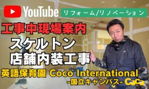 住宅のリフォーム/リノベーションではなく、スケルトン状態のテナントの内装工事になりますが、こちらは2年前に立川駅前で工事をさせて頂いた英語保育園「Coco International」さんの2店舗目、国立キャンパスの工事現場です💡