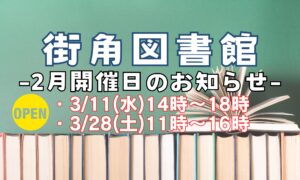 2026年3月街角図書館の開催日のお知らせです♪