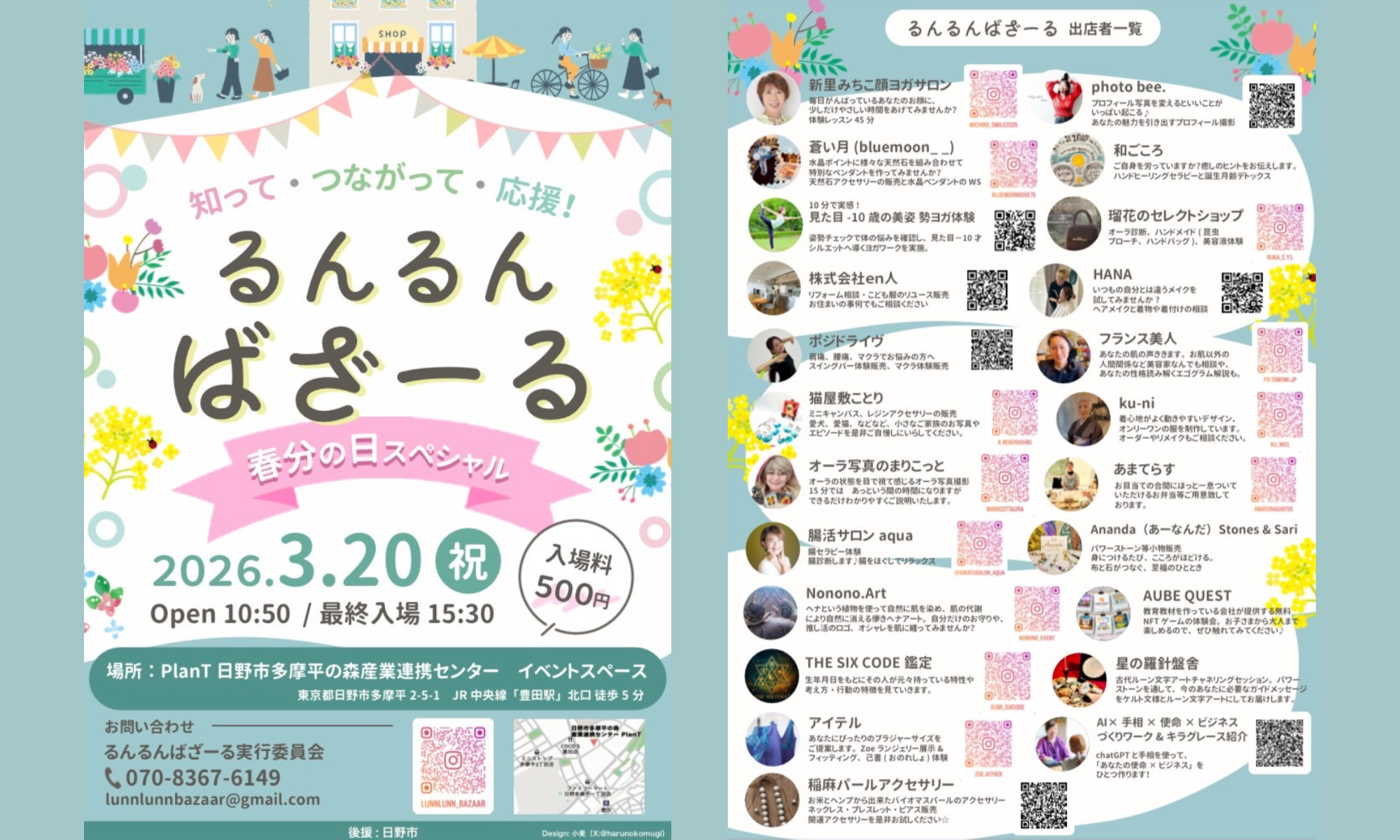 2026年3月20日に日野市で開催される「るんるんバザール」に出展致します:)